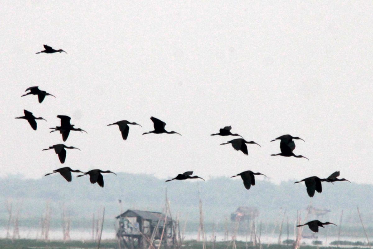 Di Danau Limboto, Ratusan Burung Ibis Rokoroko Terlihat Mencari Makan