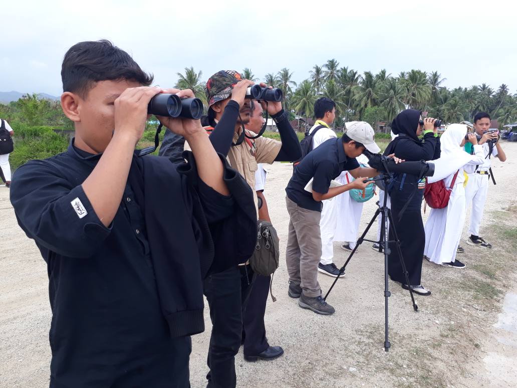 Melihat dan mengidentifikasi burung di Danau Limboto bersama siswa, mahasiswa, masyarakat pada edukasi pengenalan burung Danau Limboto di Pusat Informasi Danau (PID), Pentadio Resort, Rabu (16 Oktober 2019).